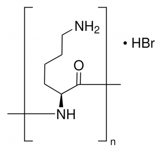 Poly-L-lysine is a positively charged amino acid polymer in which one hydrobromide (HBR) molecule accounts for one amino acid residue. Hydrobromide allows poly-L-lysine to have a crystalline, water-soluble form.