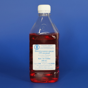 Medium 199 with Hanks's Balanced Salts, with glutamine, without bicarbonate, is a mixture of inorganic salts, amino acids, vitamins, glucose and phenolic red dissolved in purified water, sterilized through filters with pore size of 0.1 microns.